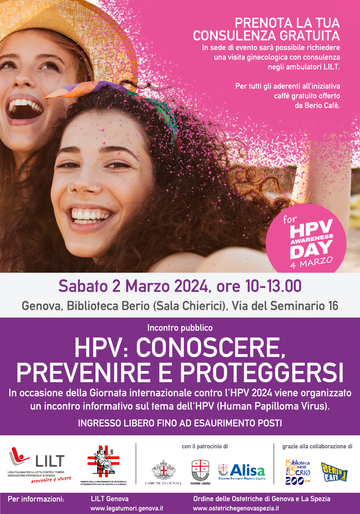 Per la giornata internazione contro l'HPV l'Ordine delle Ostetriche in collaborazione con LILT organizza un evente informativo rivolto alla popolazione